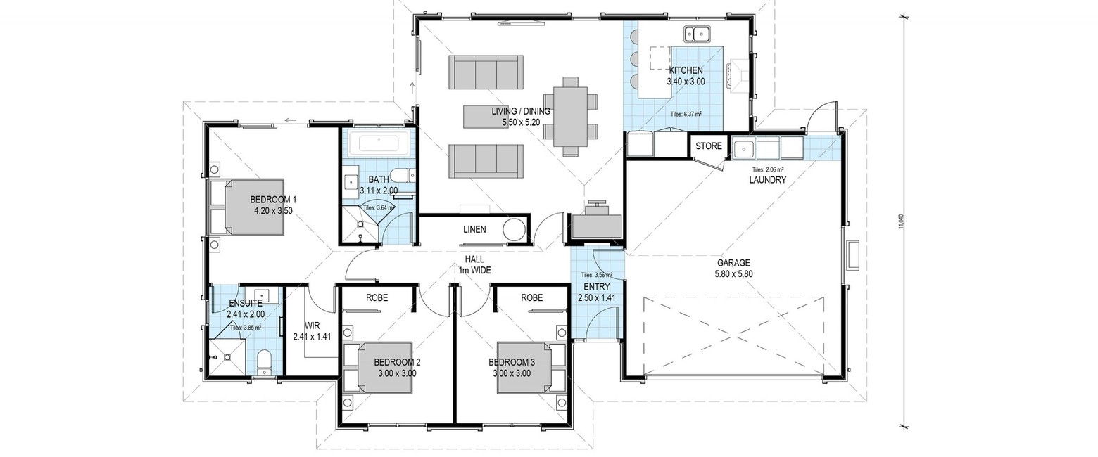 The Ashley concept plan offers generous open plan living areas that are complemented by a three bedroom and two bathroom layout.