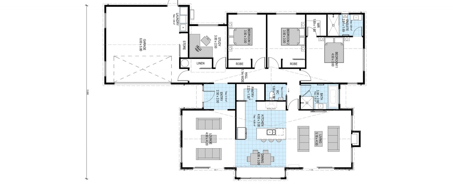 The Clyde optimises the house footprint with the combination of three bedrooms, study and generous open plan kitchen, living and dining areas.