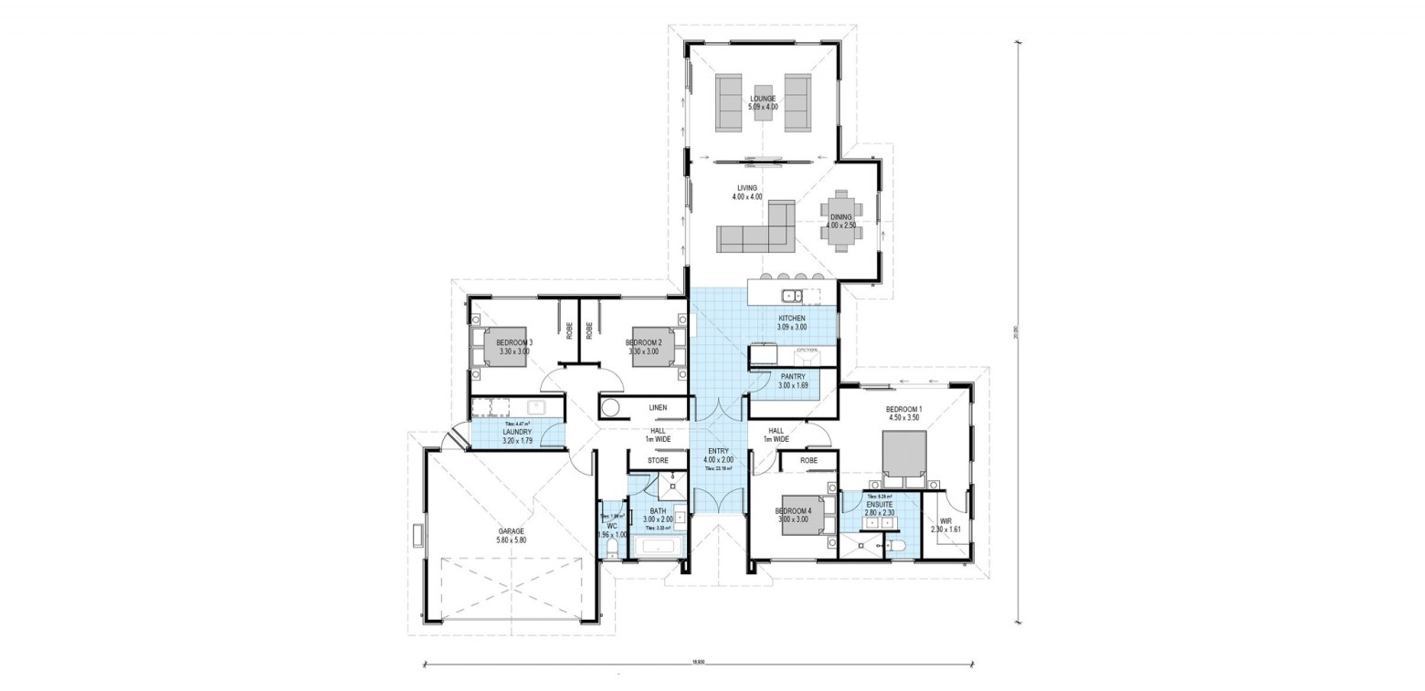 The Karitane offers a spacious single storey layout combining four bedrooms with open plan living, internal access double garage, family and ensuite bathrooms.