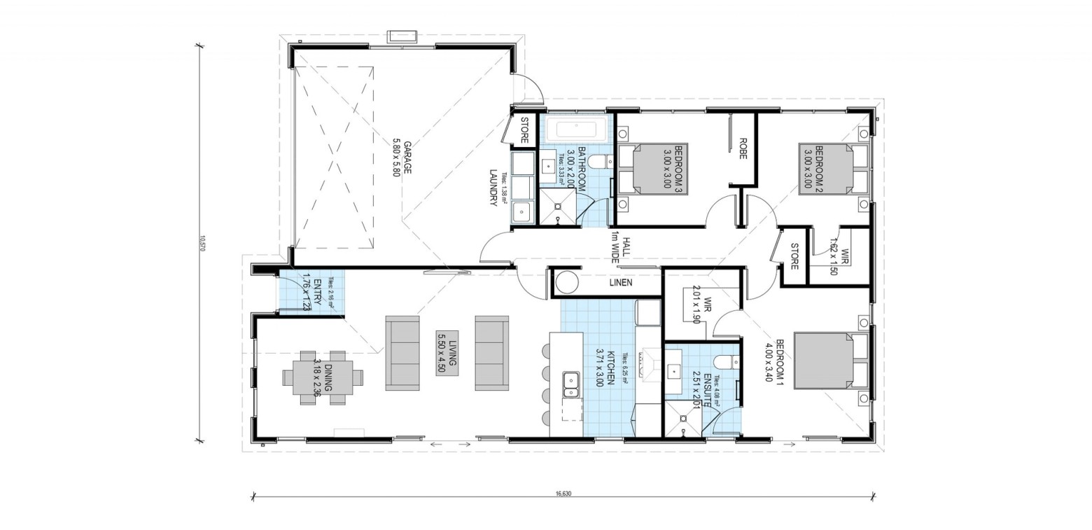 The Kingston is a three bedroom, two bathroom home design that is perfectly suited to those wanting traditional style and a very functional floor plan.