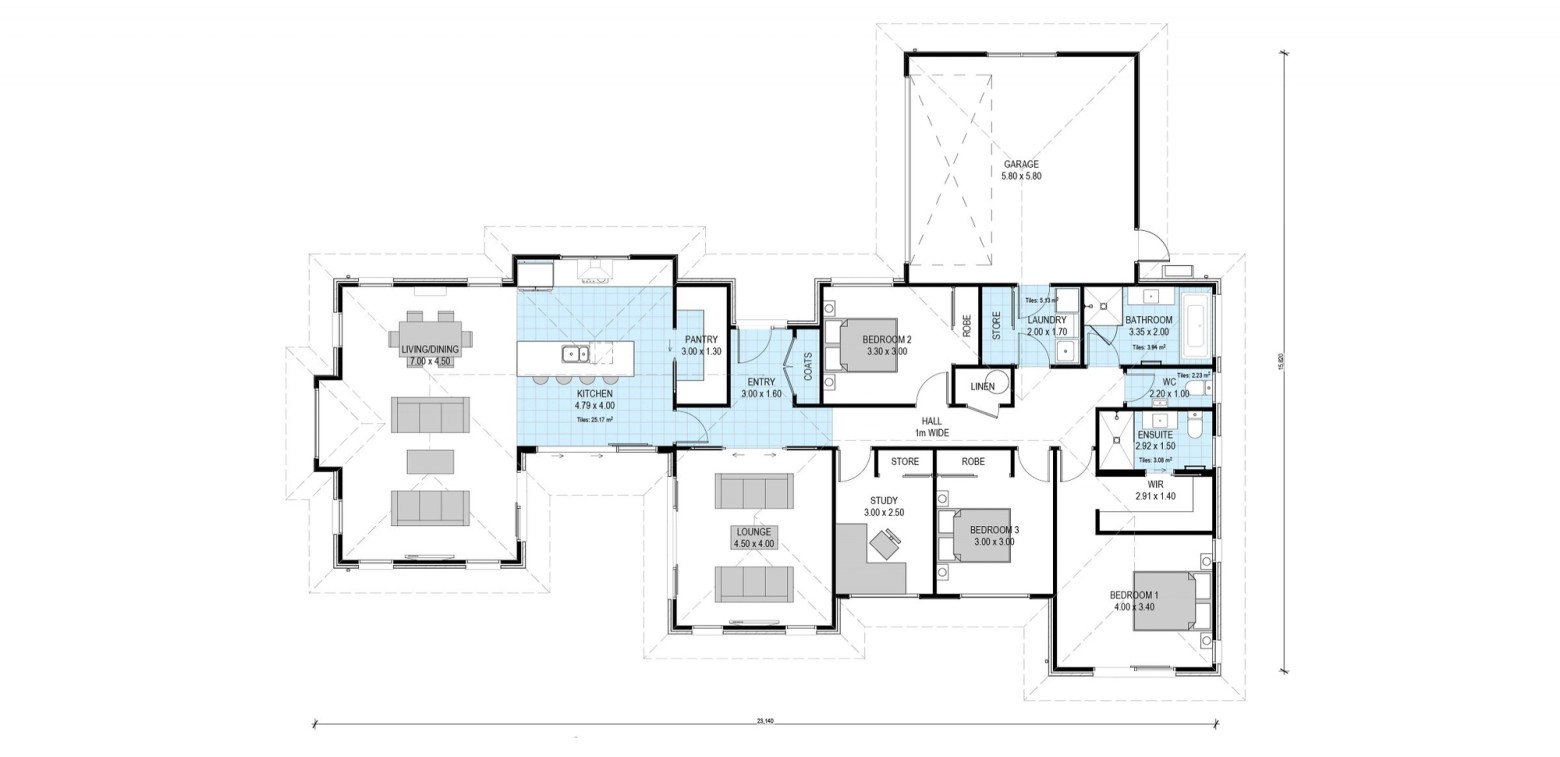 The Kinloch plan offers a very functional layout combining living areas with three bedrooms and a separate study.