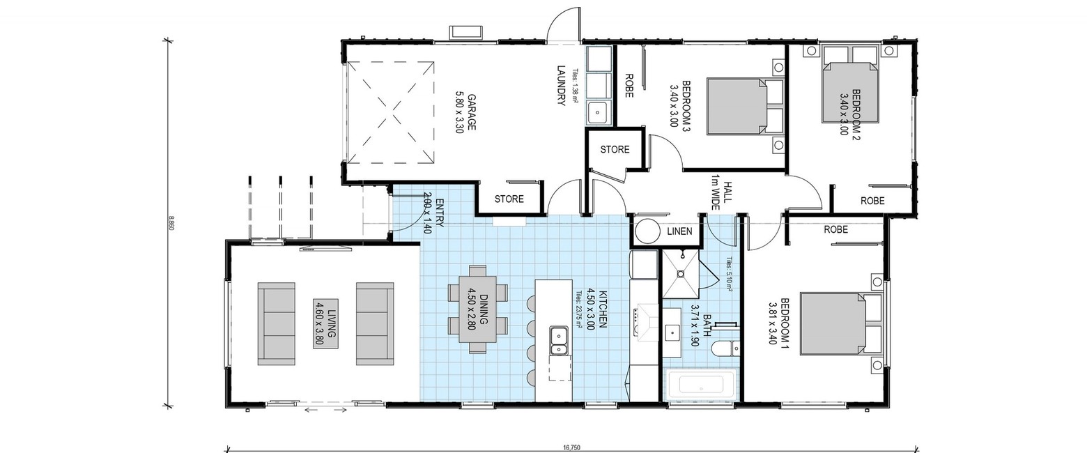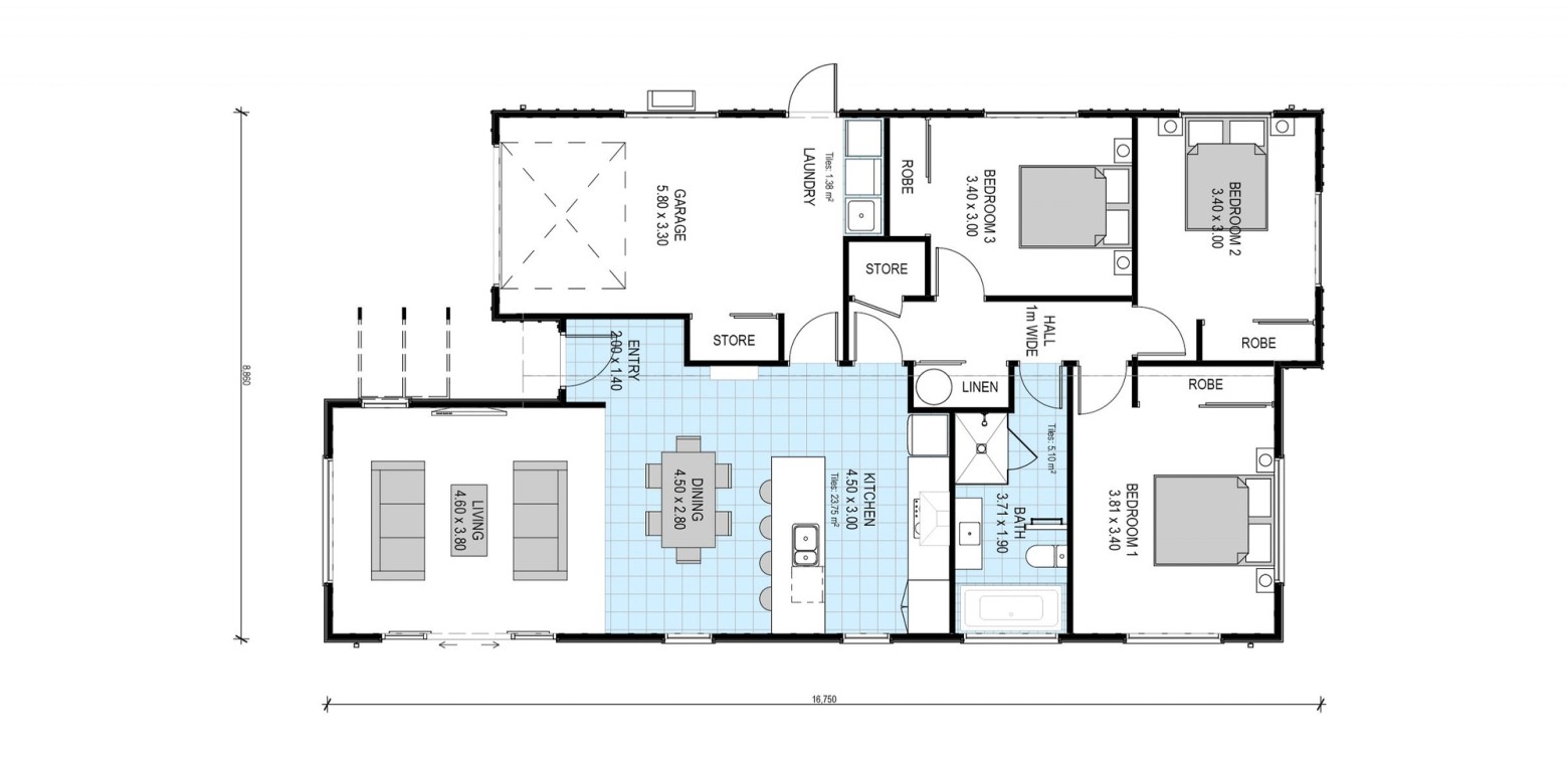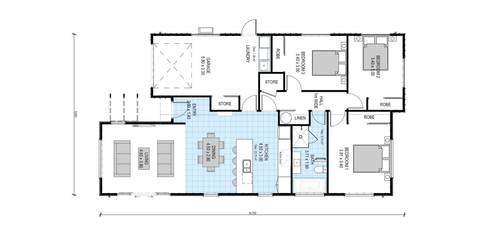 The Waiheke combines three bedrooms with a generous open plan kitchen, dining and living area.