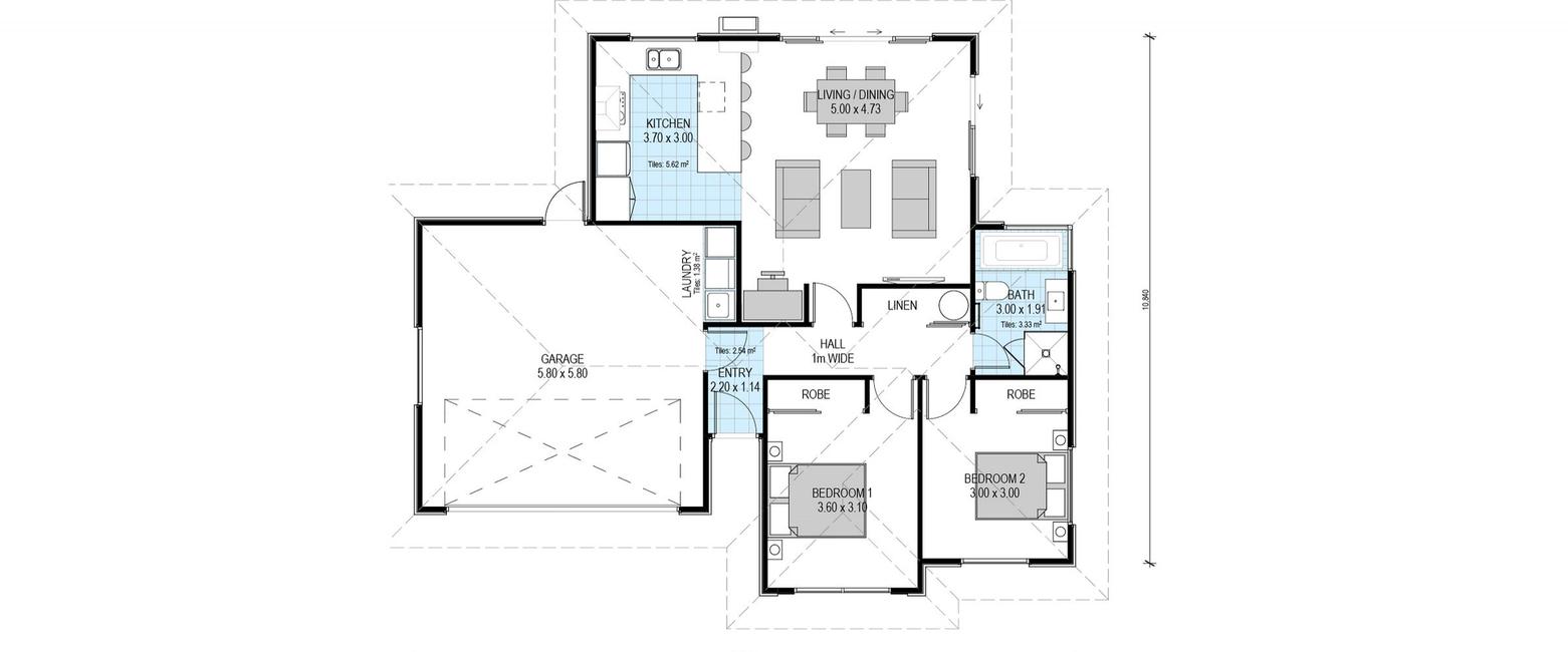 With internal access double garaging, open plan kitchen, dining and living areas, and two bedrooms, this design is both appealing and practical.