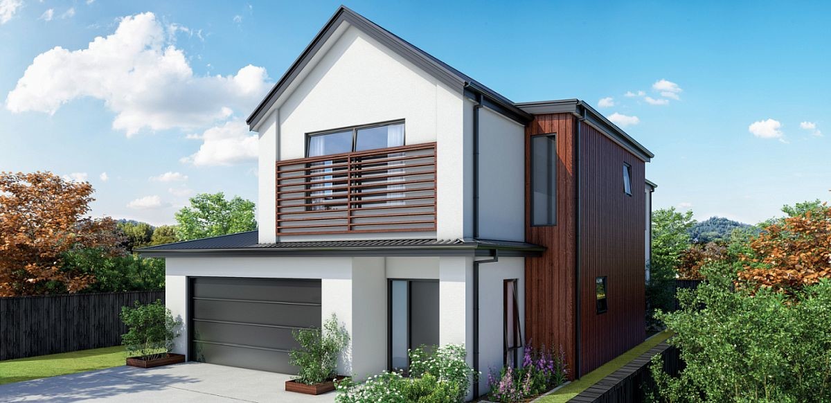 The two storey modern Papamoa plan incorporates superb open plan living areas with one bedroom downstairs and three bedrooms (master with ensuite) upstairs.