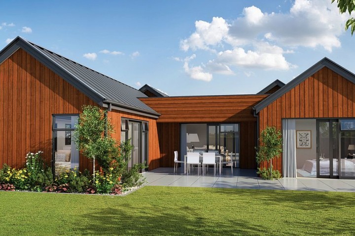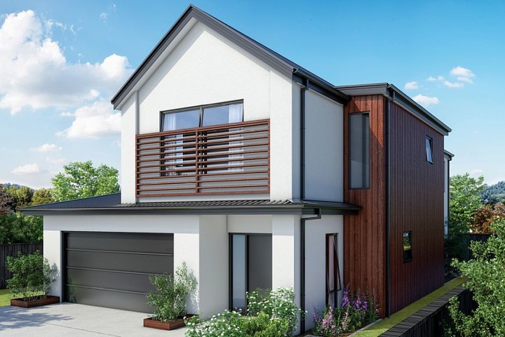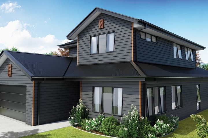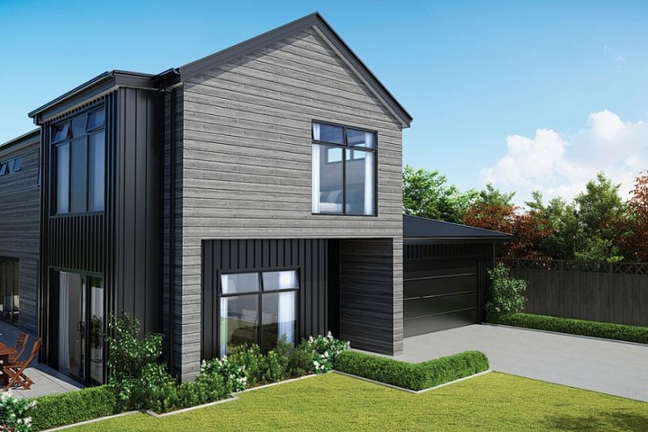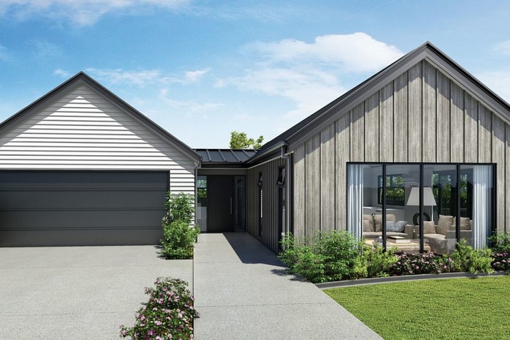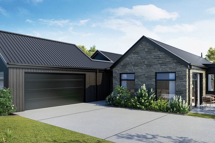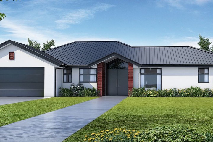 With four bedrooms, two family bathrooms (plus ensuite), and double garaging, the Hampden offers a substantial floor plan combined with a contemporary design aesthetic.