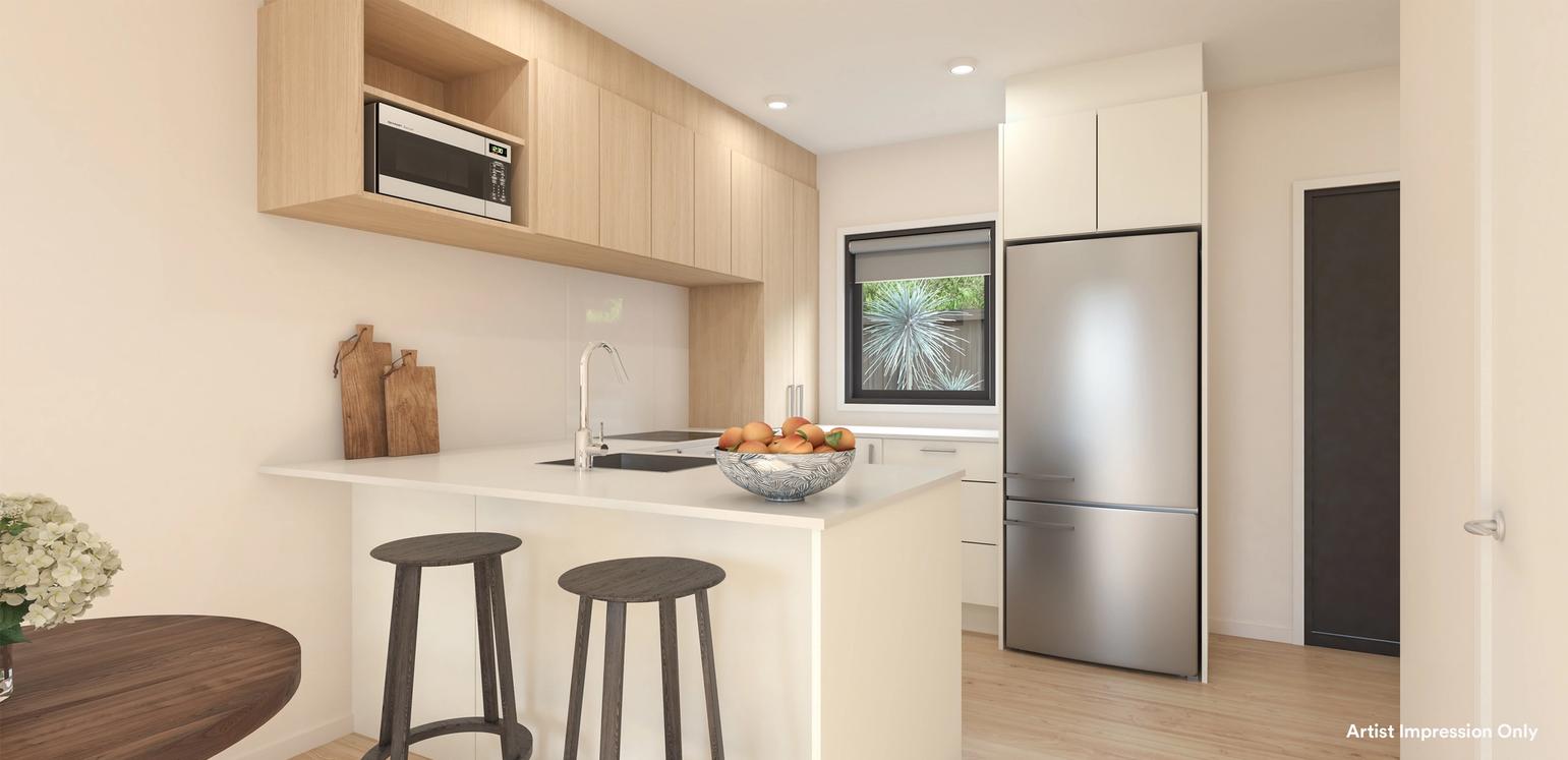 This two storey home comes with a carpark and features an open plan kitchen, dining and living area that connects to the outdoor space plus a separate laundry and toilet on the ground floor with two bedrooms and a bathroom on the first floor.