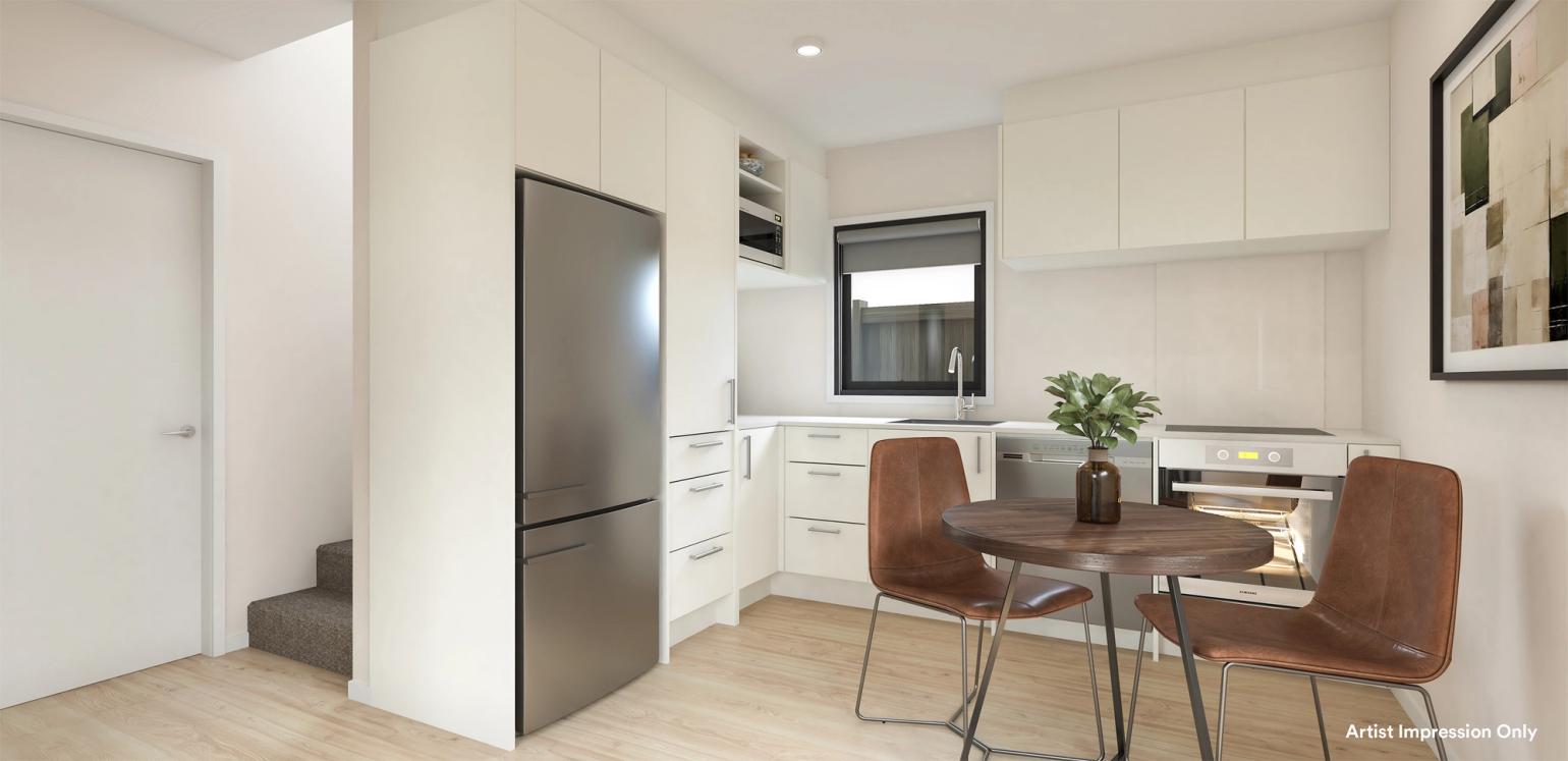 This two storey home comes with a carpark and features an open plan kitchen, dining and living area that connects to the outdoor space plus a separate laundry and toilet on the ground floor with two bedrooms and a bathroom on the first floor.
