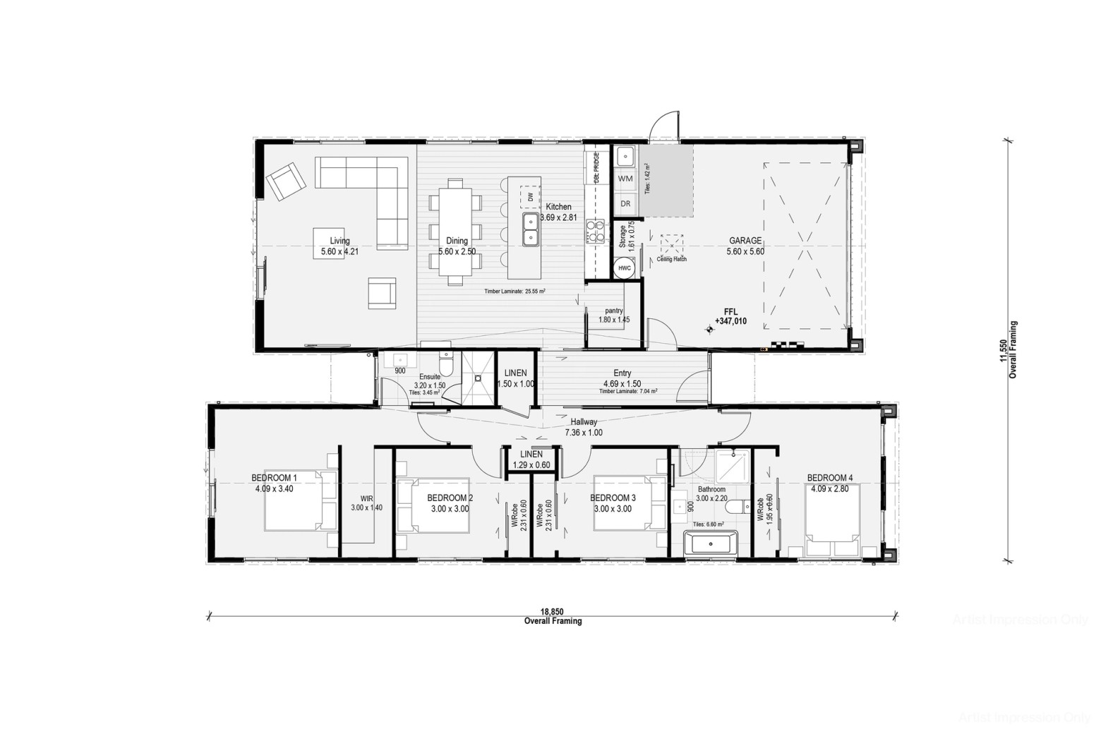 The open plan living, dining and kitchen area is the centre of the home, and offers a great outlook onto the easy care section. With 4 double bedrooms, a family bathroom and ensuite, the house combines great functionality with a stylish feel. The ability to separate the 2 front bedrooms and rent out, gives the added bonus of further Income. The home has an internal access double garage, and plenty of storage within.