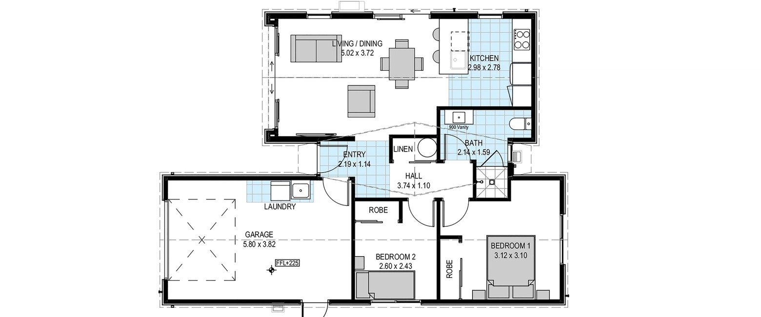 This well-designed home features two bedrooms, an open-plan kitchen, living, and dining area, and an internal access single garage. It maximises space and offers great indoor-outdoor flow. The spacious bathroom includes a tiled shower and quality fixtures that complement the overall style and comfort.