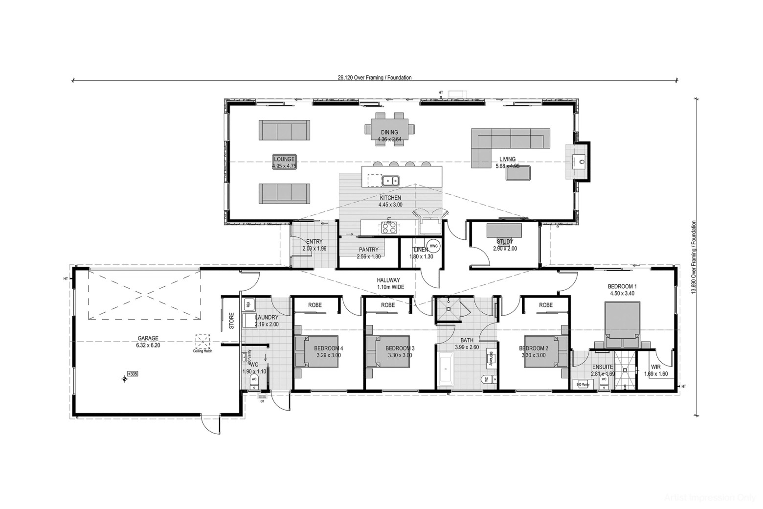 This home has a thoughtful floor plan that combines four double bedrooms, two bathrooms and a superb open plan living area.