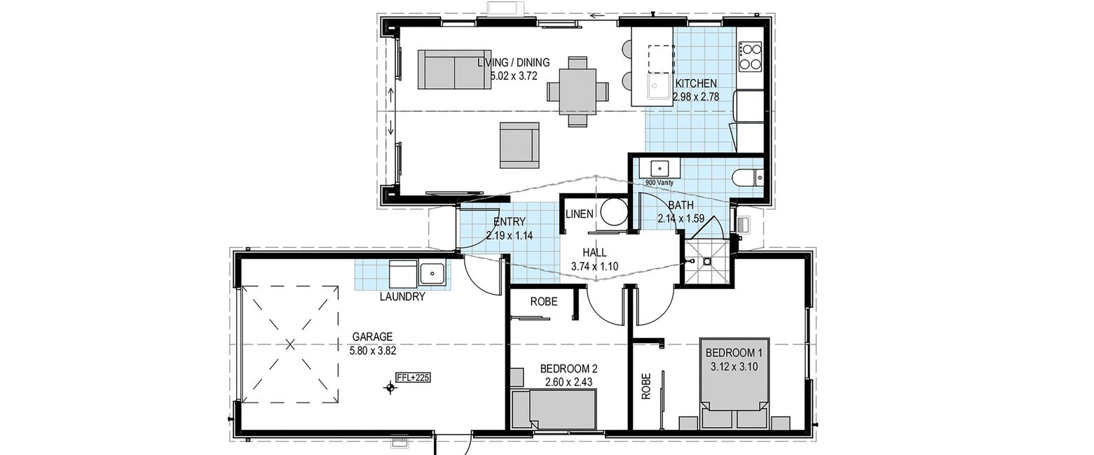 This well-designed home features two bedrooms, an open-plan kitchen, living, and dining area, and an internal access single garage. It maximises space and offers great indoor-outdoor flow. The spacious bathroom includes a tiled shower and quality fixtures that complement the overall style and comfort.