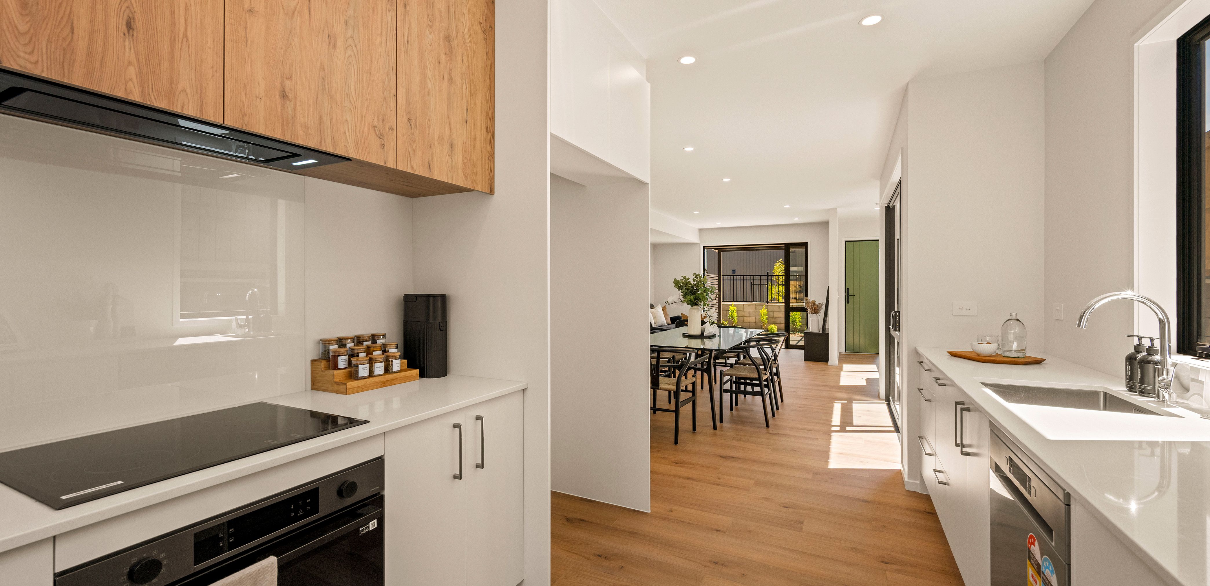 This two storey home has an off-street carpark, three double bedrooms, family bathroom, ensuite and a spacious open plan kitchen, dining and living area that opens out on to two separate entertaining areas. Finished with quality fixtures and fittings and a landscaped section, this home offers great value and an easy lifestyle.