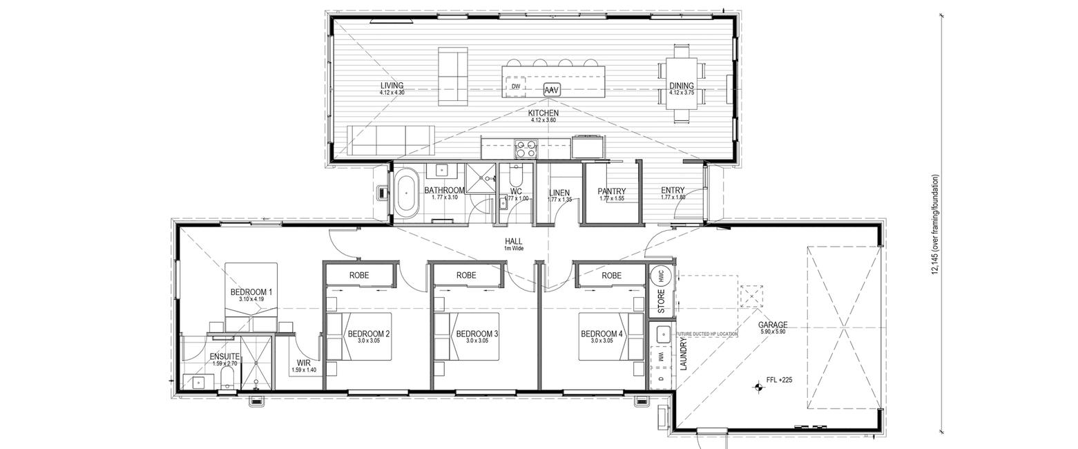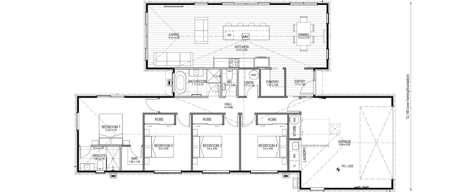 This modern four bedroom home is perfect for growing families, offering spacious living areas and seamless indoor-outdoor flow to a private courtyard. The stylish kitchen and two bathrooms combine comfort and functionality, with a separate toilet for convenience. A double garage and ample storage add practicality to contemporary family living.