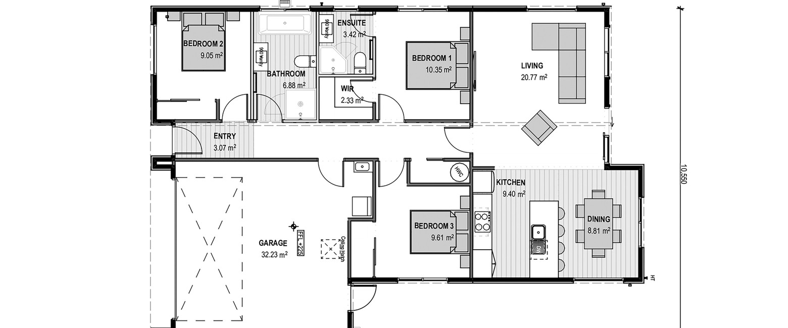 This stylish 3 double bedroom home has a spacious open plan design and a North facing easy care section that is fully landscaped and ideal for relaxing and entertaining. All of the bedrooms are well appointed, with a separate family bathroom and ensuite. The home has been finished to a high standard with quality fixtures and fittings throughout. It offers an internal access double garage and has all driveways and fencing included in the sale price.