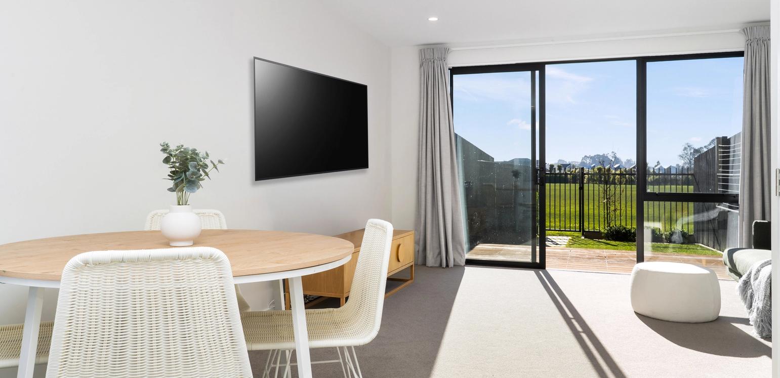 This two storey home comes with a carpark and features an open plan kitchen, dining and living area that connects to the outdoor space plus a separate laundry on the ground floor and two generous bedrooms and a bathroom on the first floor.