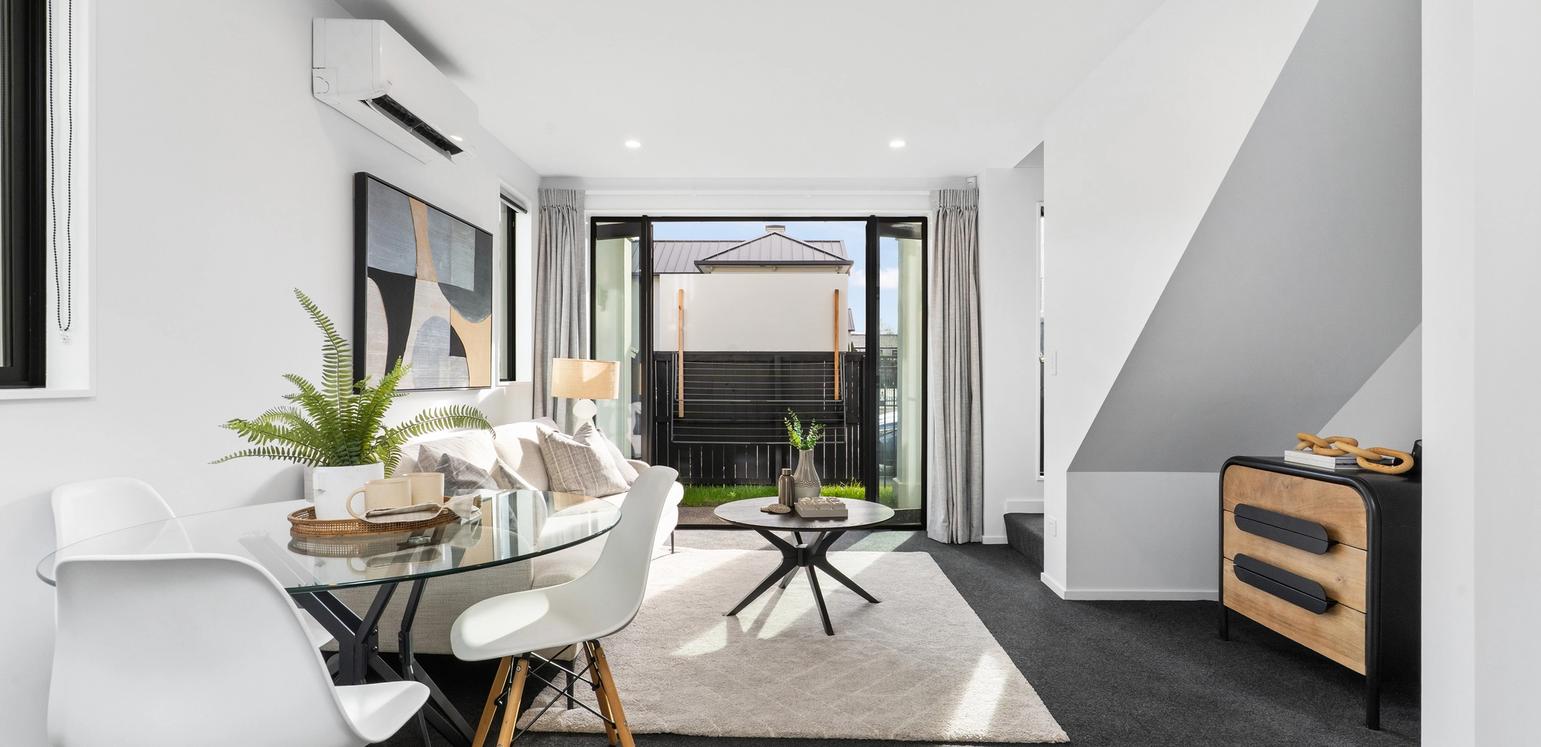 This three storey homes features an open plan kitchen, dining and living area and laundry on the ground floor, a bedroom, bathroom and balcony on the middle floor and a bedroom and ensuite on the top floor.