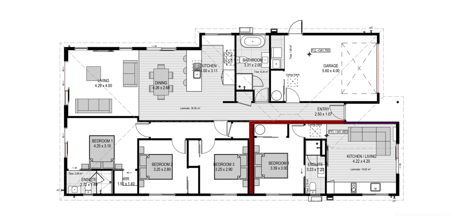 This thoughtfully crafted property features a stunning 3-bedroom, 2-bathroom main home with a single garage, plus a self-contained 1-bedroom, 1-bathroom flat – perfect for extended family, guests, or for generating some extra income.