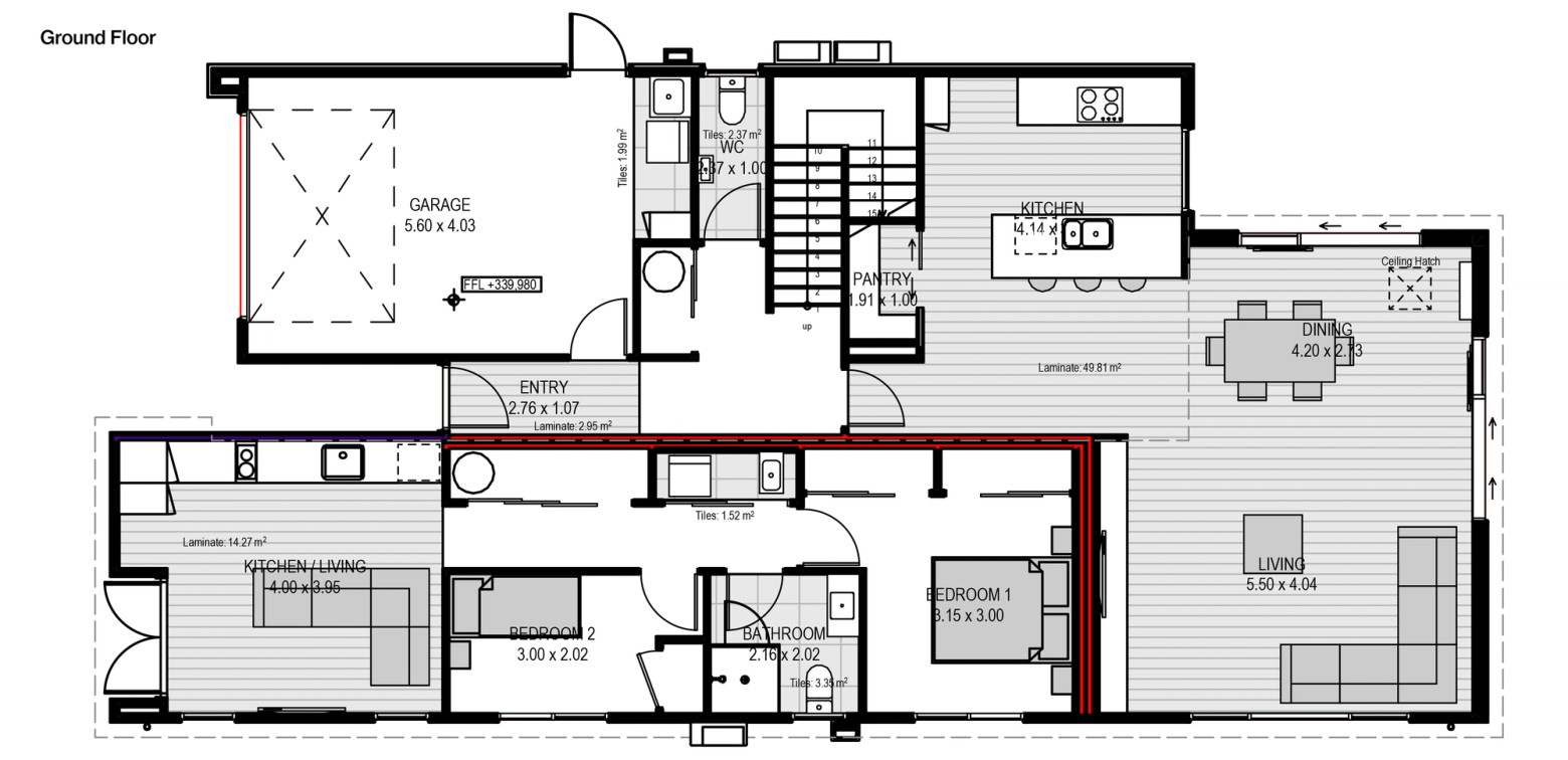 This thoughtfully crafted property features a stunning 3-bedroom, 2-bathroom main home with an internal access single garage and a separate WC , plus a self-contained 1-bedroom, 1-bathroom flat – perfect for extended family, guests, or for generating some extra income.