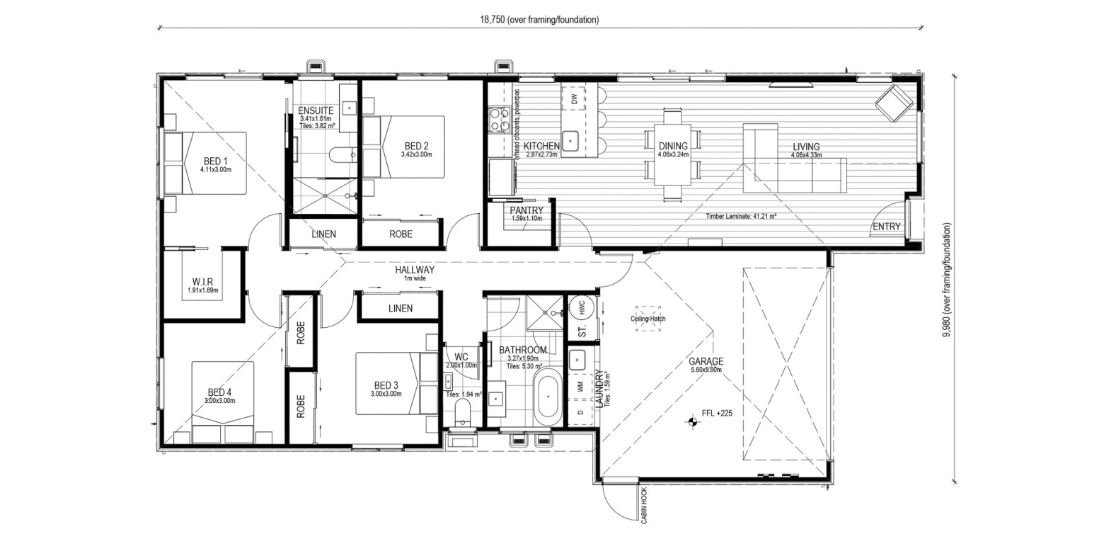 This bright and airy four double bedroom home has a great open plan layout that flows nicely between the kitchen, dining, and living areas.