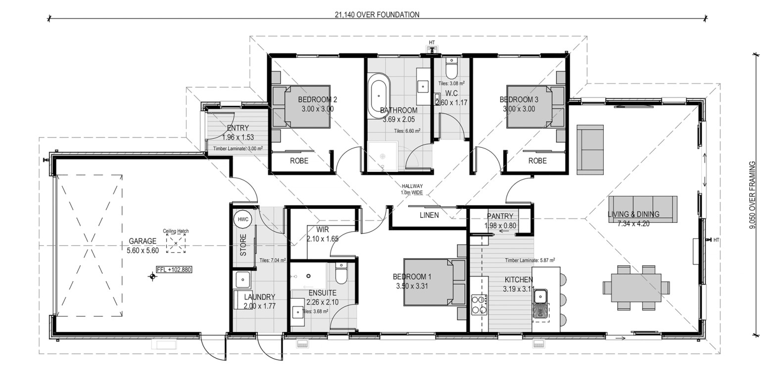 This home has a thoughtful floor plan that combines three double bedrooms, two bathrooms, a spacious open plan living area, separate laundry and a double garage.