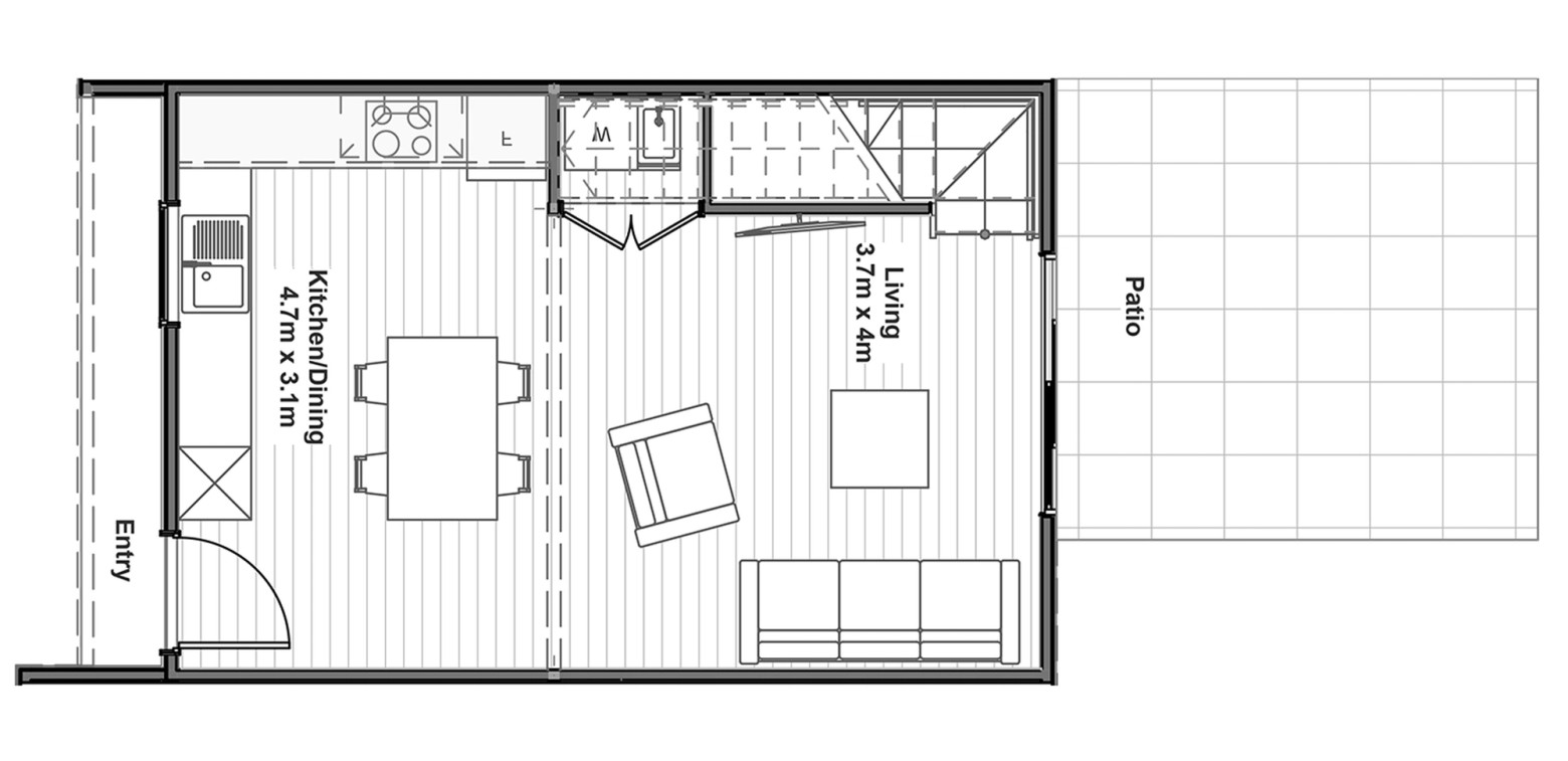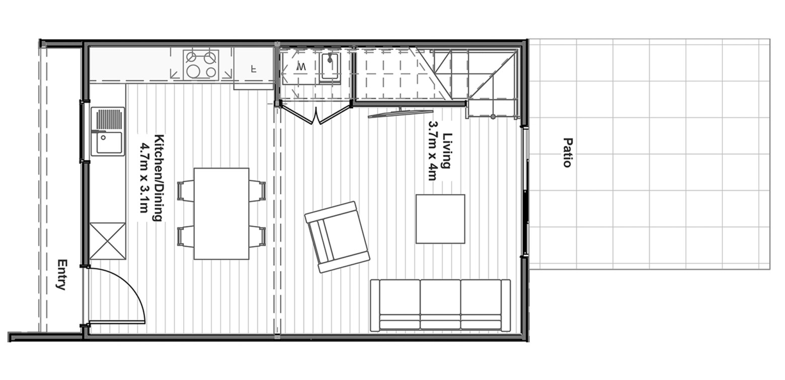 This two storey home has an off-street carpark, two double bedrooms, a bathroom, separate toilet, separate laundry and a spacious open plan kitchen, dining and living area that opens out on to an entertaining area.