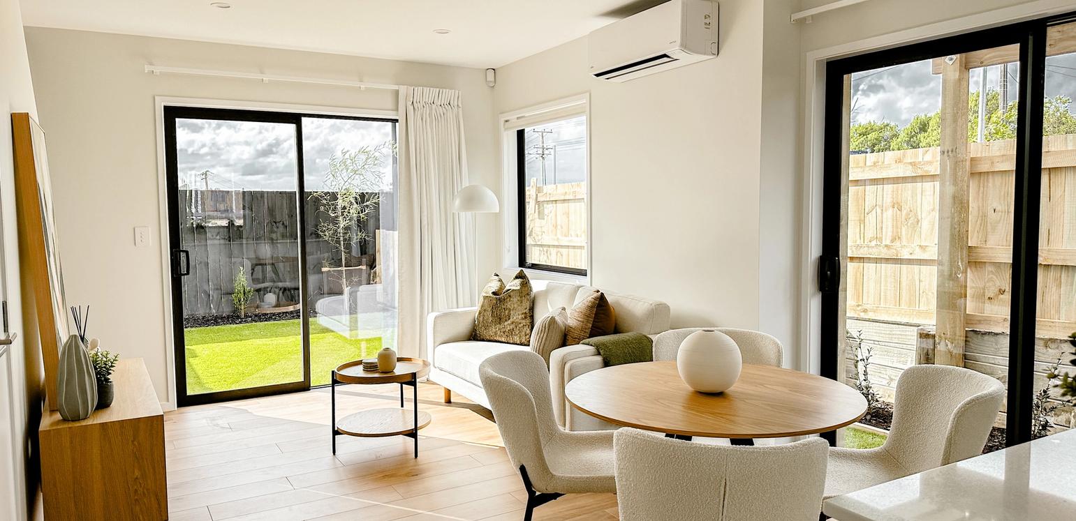 This two storey home comes with a carpark and features an open plan kitchen, dining and living area that connects to the outdoor space plus a separate laundry and toilet on the ground floor and two bedrooms and a bathroom on the first floor.