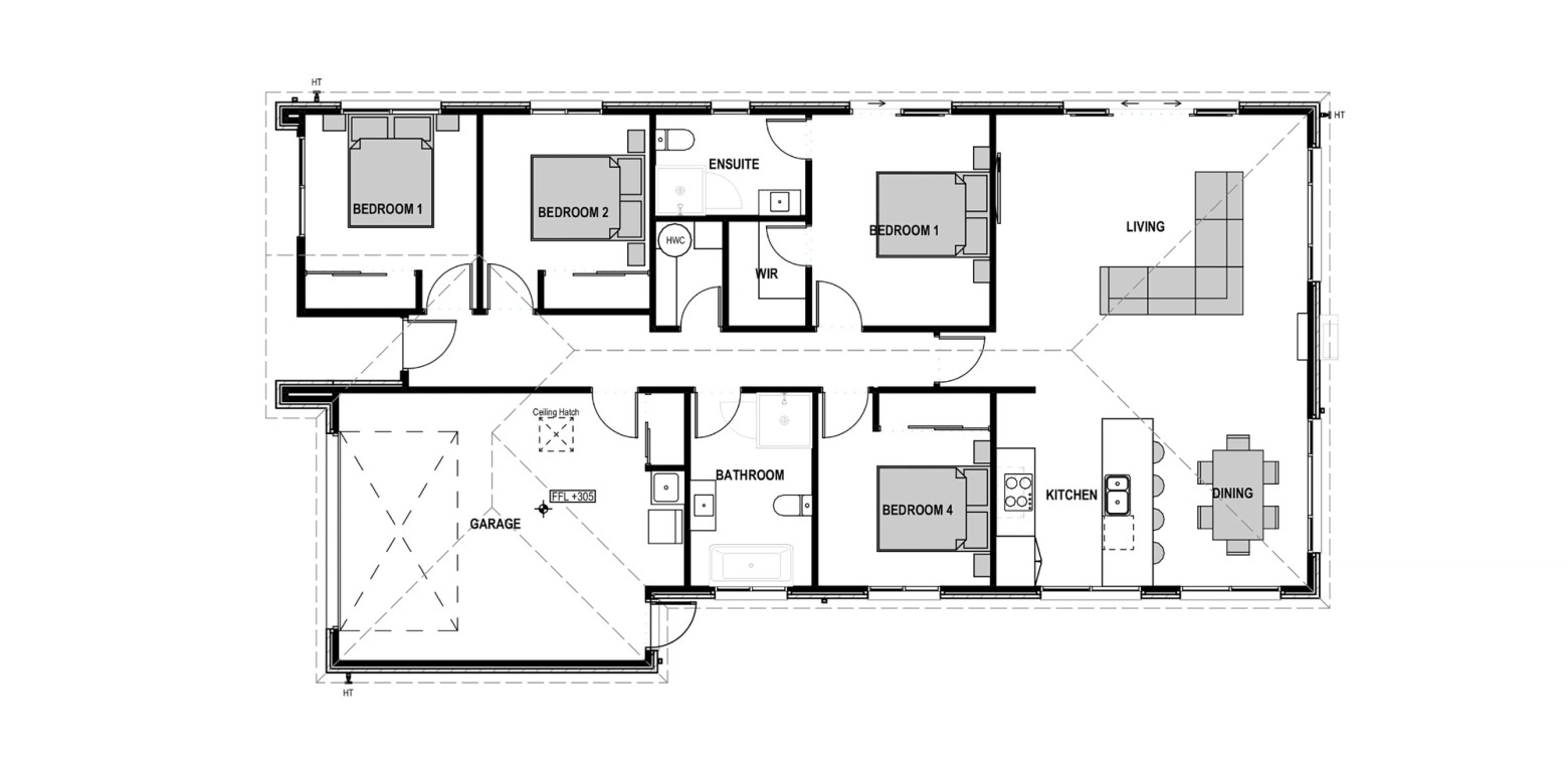 This stylish four bedroom, double garage home offers an open plan design with an easy care section, ideal for relaxing and entertaining.