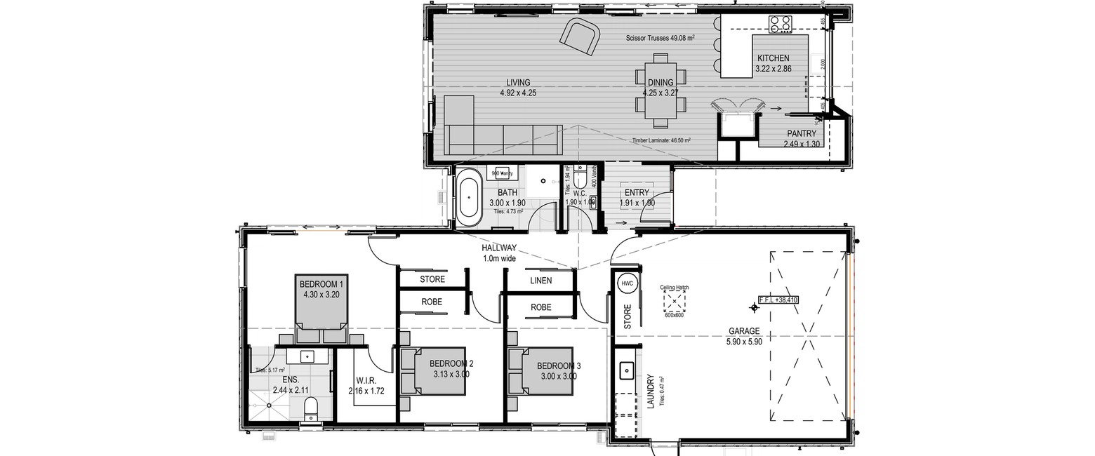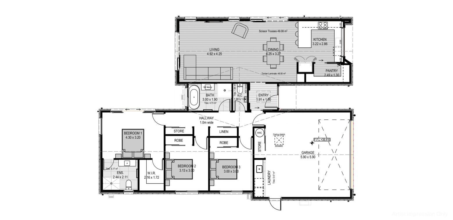 Step inside this thoughtfully designed showhome, where modern style meets practical living. Featuring three generous double bedrooms, the home includes a well-appointed master complete with a walk-in wardrobe and private ensuite. A spacious open plan kitchen, dining, and living area forms the heart of the home, enhanced by stone benchtops and feature joinery that adds both style and functionality to the dining space.