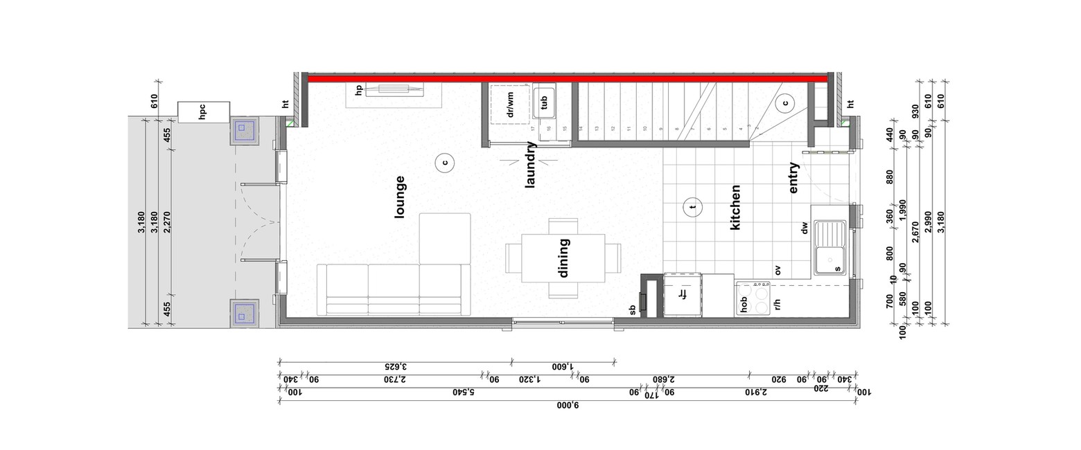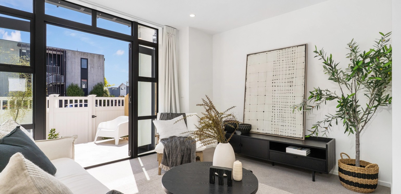 This three storey home features an open plan kitchen, dining and living,