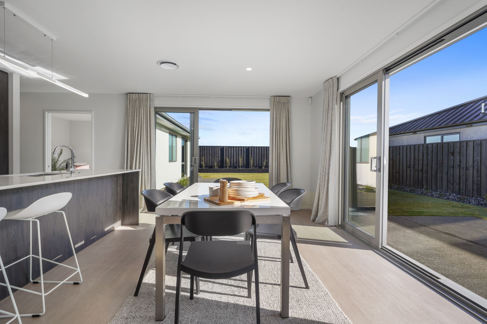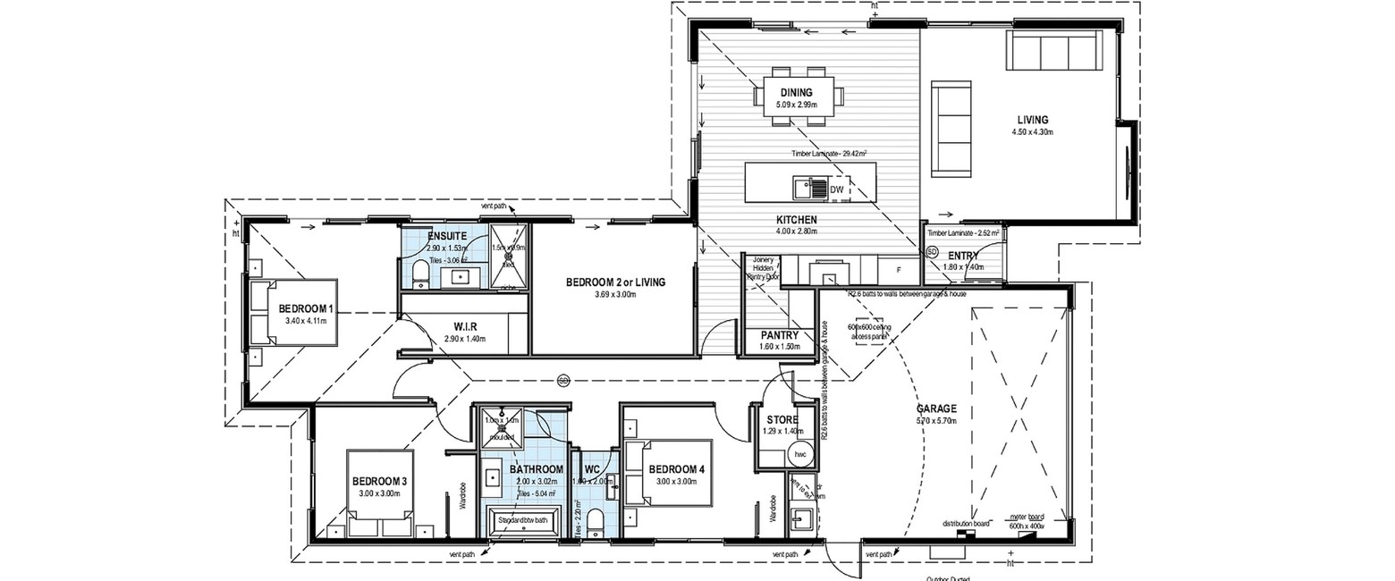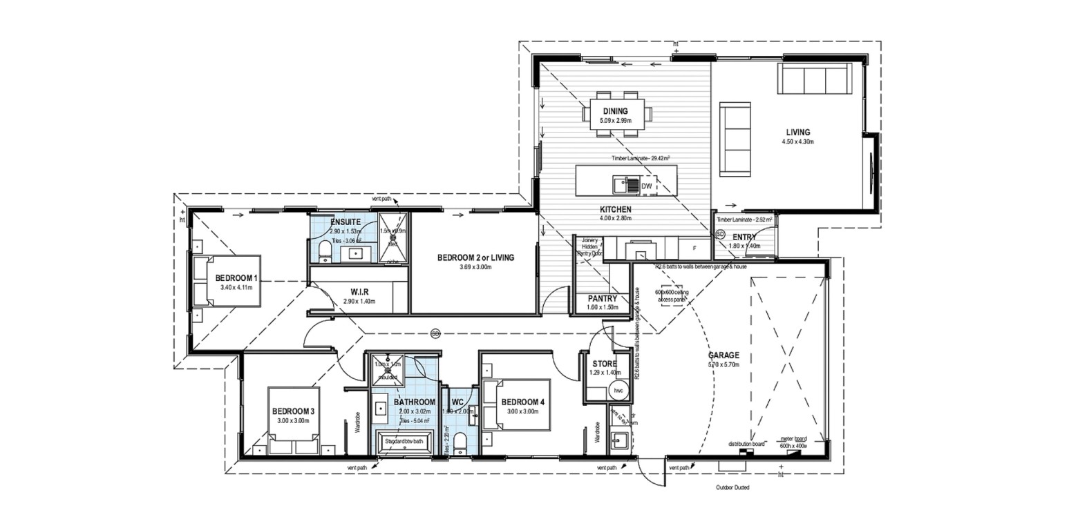 This stunning three double bedroom, two bathroom home has a spacious floor plan that can be adapted in several ways to add additional bedrooms or living spaces. A North-facing open plan living/dining/kitchen area offers easy access to the outdoor entertaining area within the fully landscaped section.