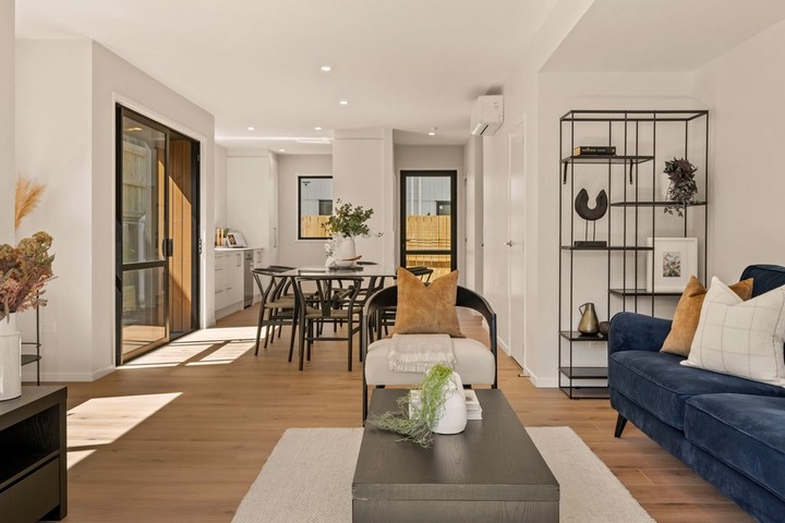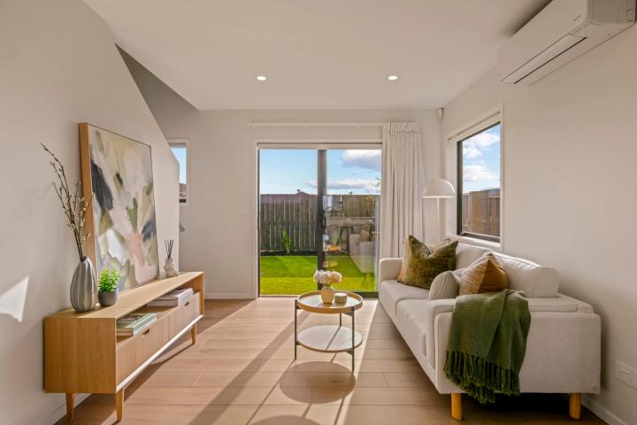This two storey home has an off-street carpark, three double bedrooms, family bathroom, ensuite and a spacious open plan kitchen, dining and living area that opens out on to two separate entertaining areas. Finished with quality fixtures and fittings and a landscaped section, this home offers great value and an easy lifestyle.